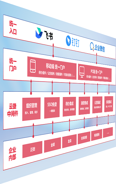 对协作平台提供支持服务,,支持企业应用与协作平台对接,,,包含组织同步、、、消息集成、、、待办集成等。。支持目前主流的协作平台:钉钉、、企微和飞书。。。。